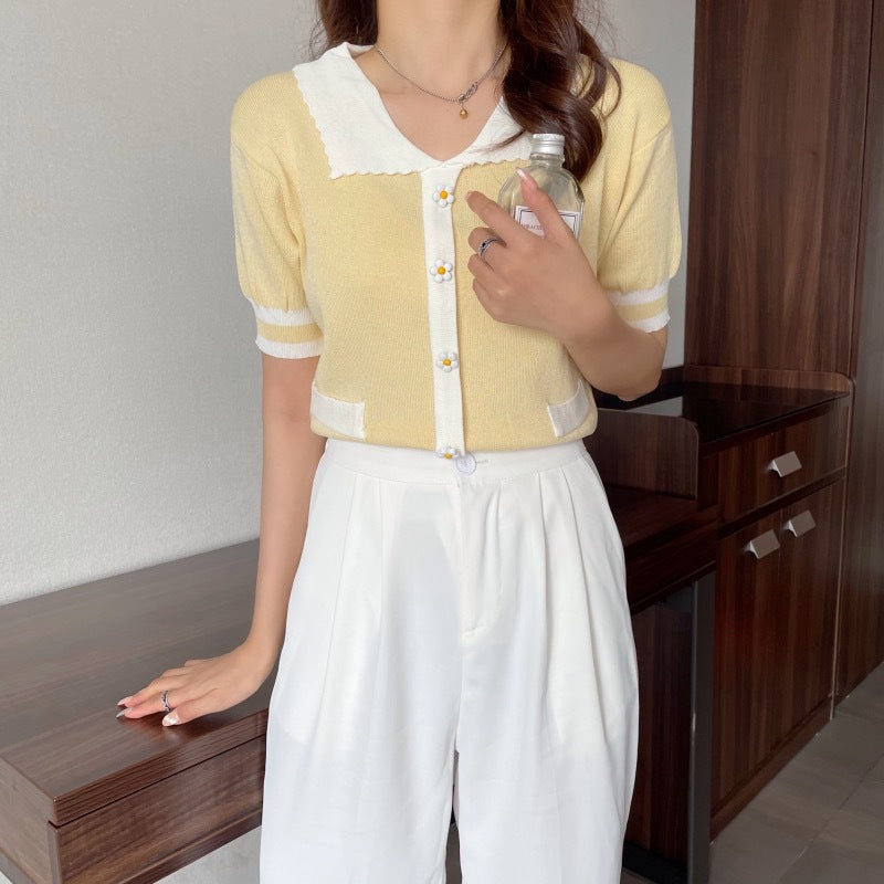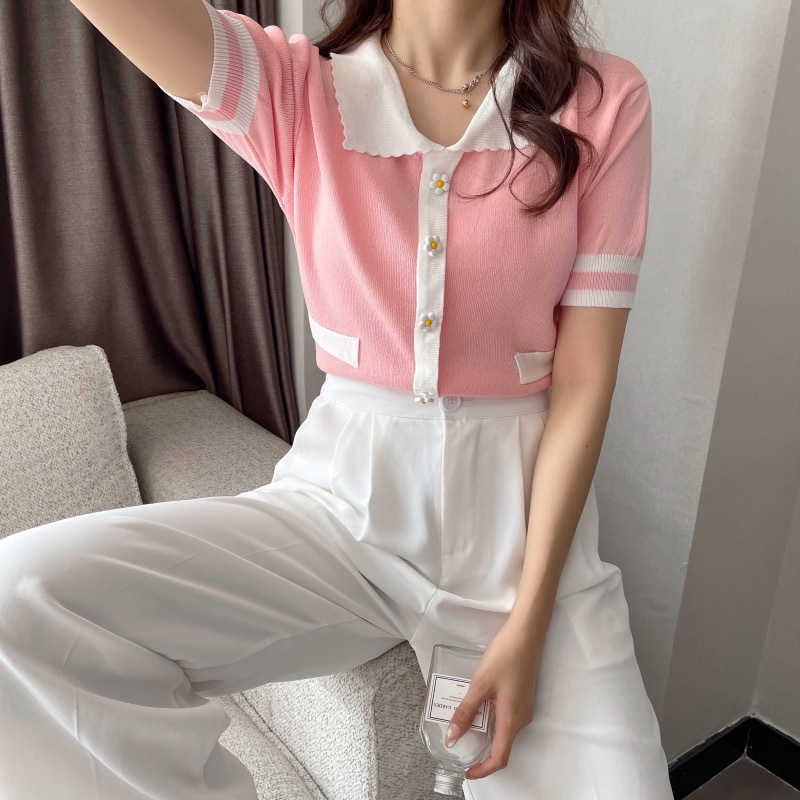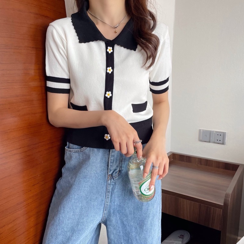 Womens Casual Versatile Top With Plum Blossom Decorative Buttons