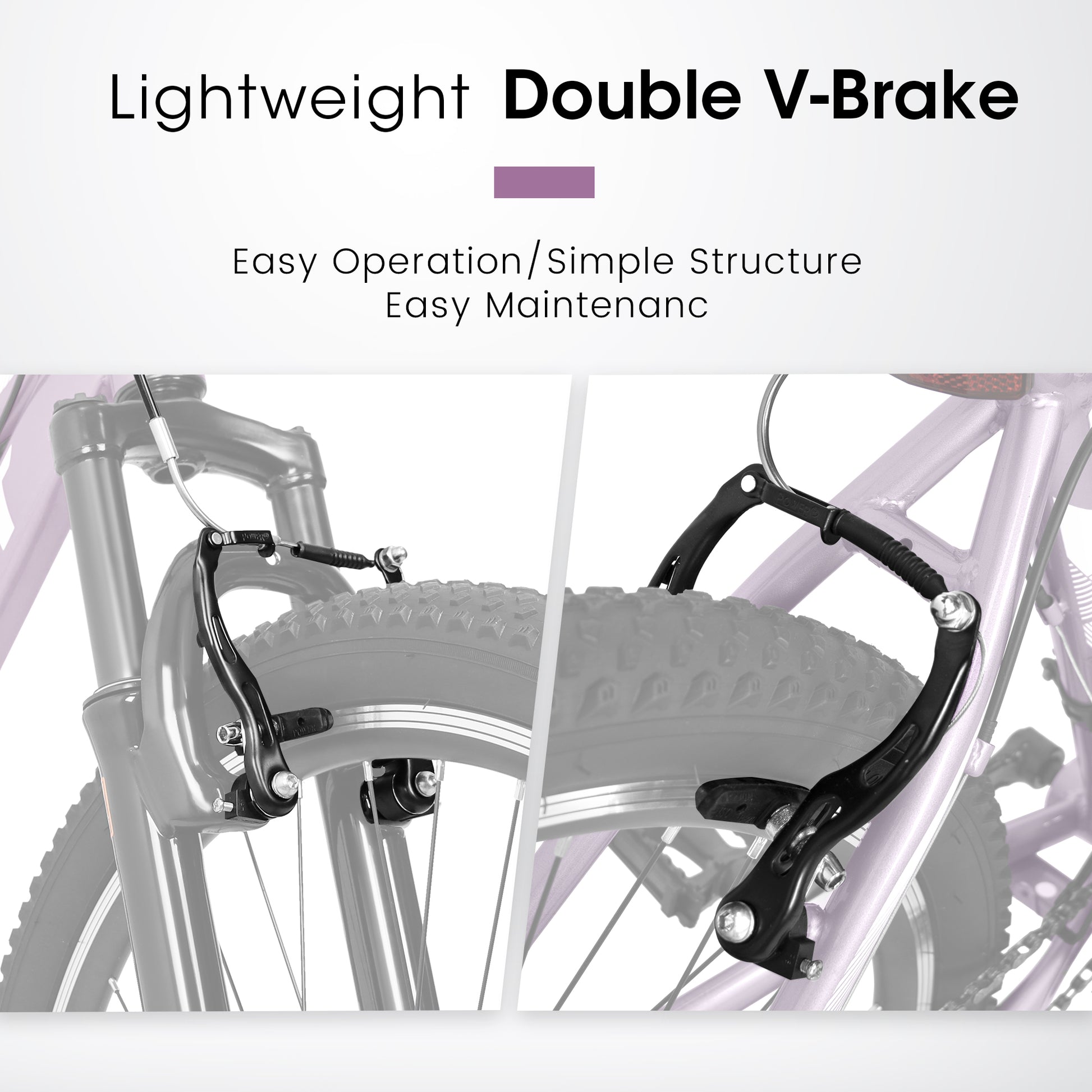 A26208 Ecarpat 26 Inch Mountain Bike, 21-Speed V-Brake, Front Suspension, Carbon Steel Frame Mountain Bike For Teenagers Girls Women Bicycles