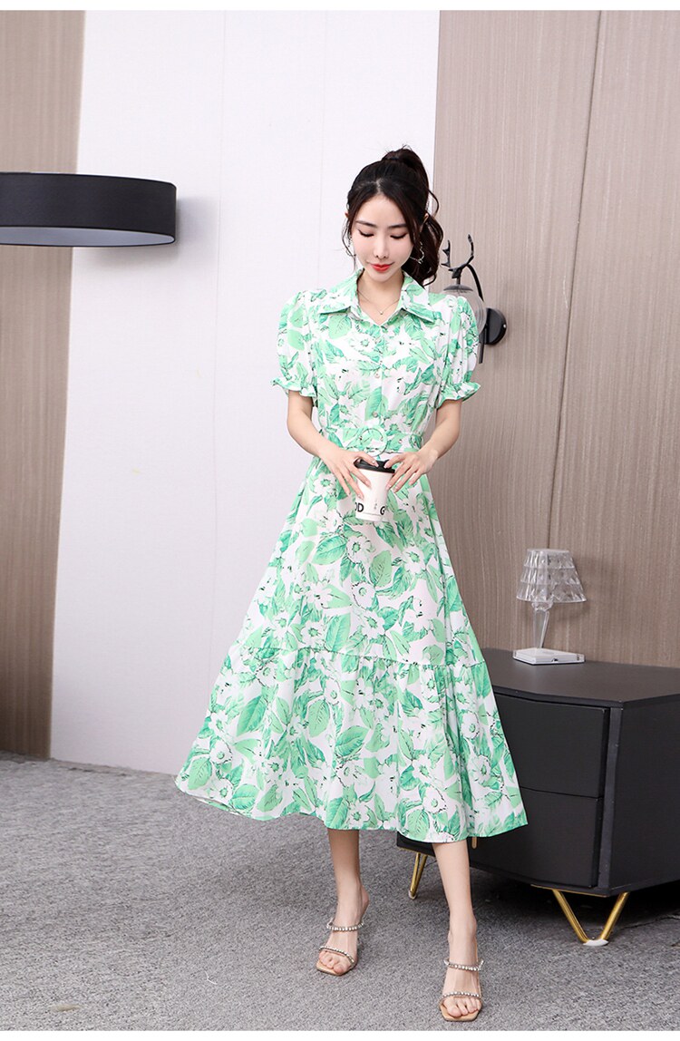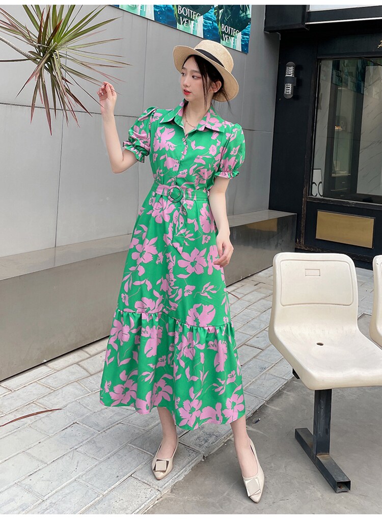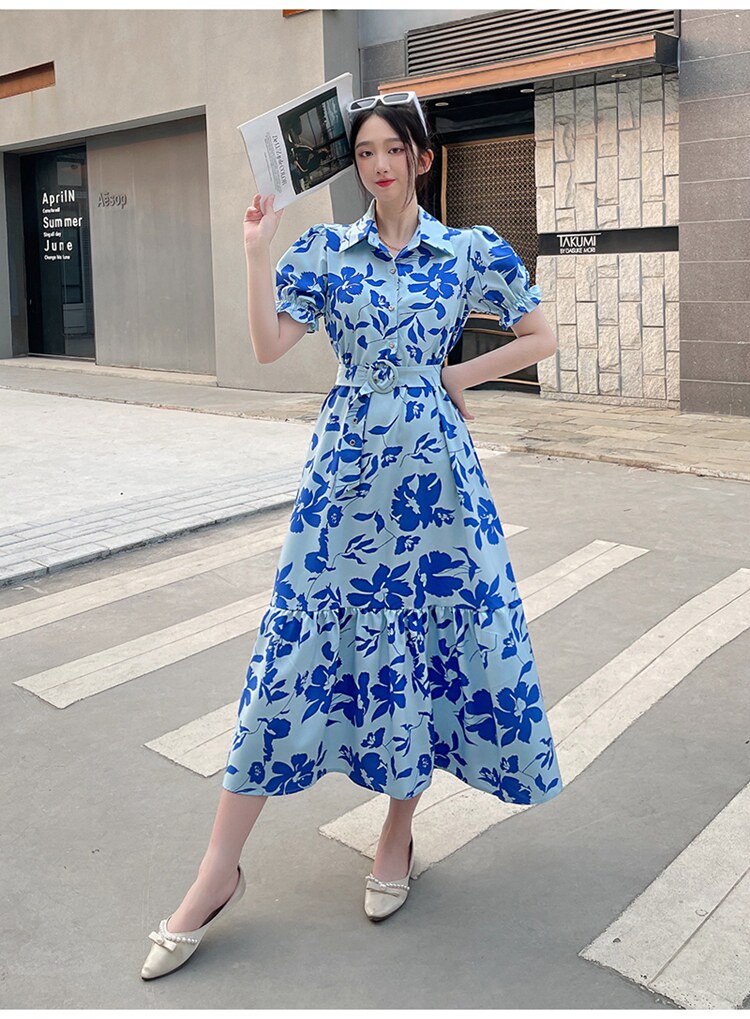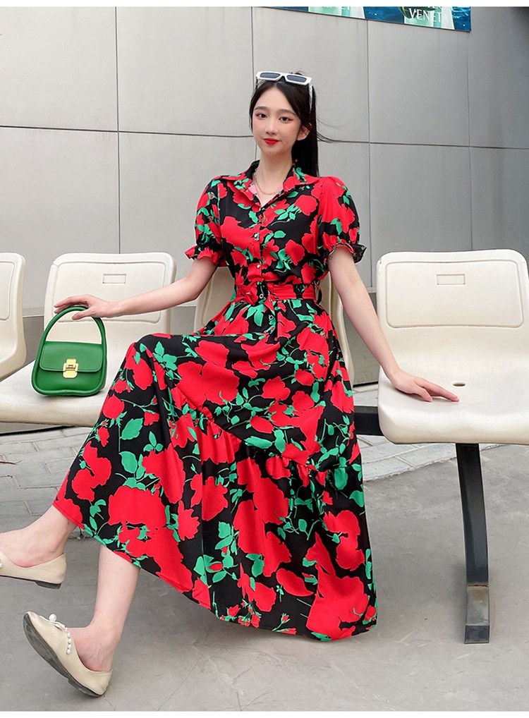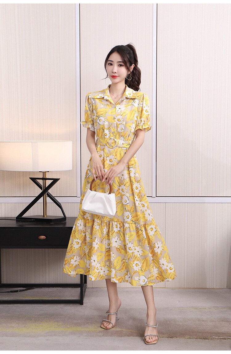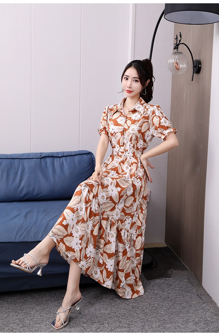 Floral Lapel Loose Fitting Short Sleeve Dress
