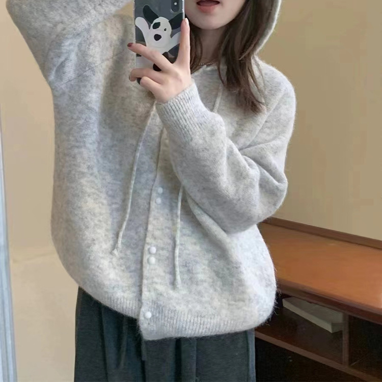 Loose Laid Back Hooded Knit Cardigan Jacket