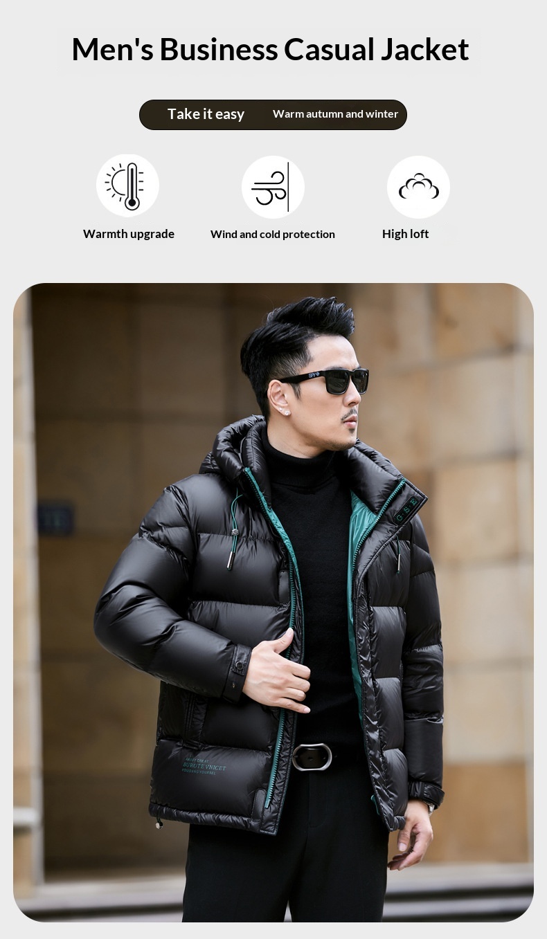 Mens Premium 90 White Duck Down Puffer Jacket With A Hood