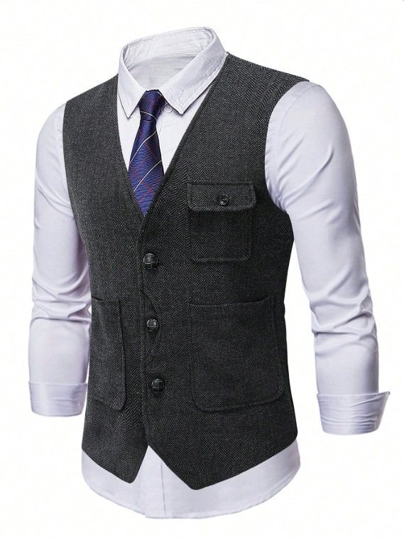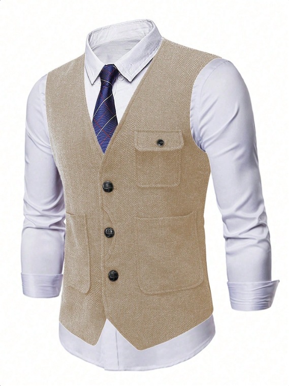 Mens Single-Breasted Suit Vest Casual Business Jacket