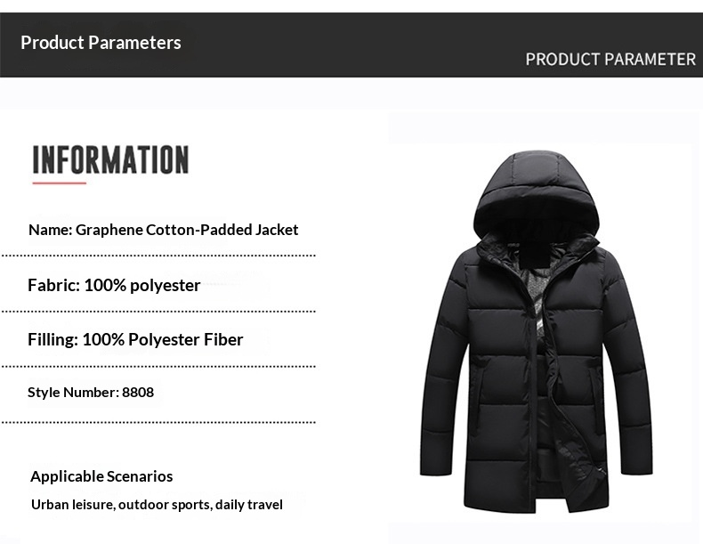New Mens Graphene Cotton Jacket With A Detachable Hoodextra-thick And On-trend