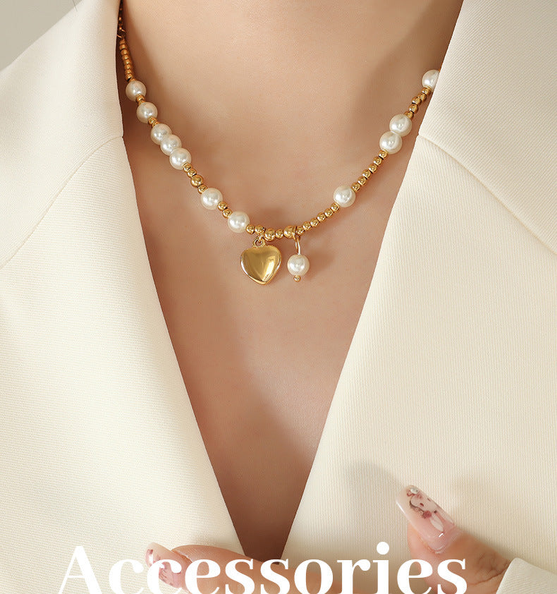 Titanium Steel Pearl Love Heart Pendant Necklace