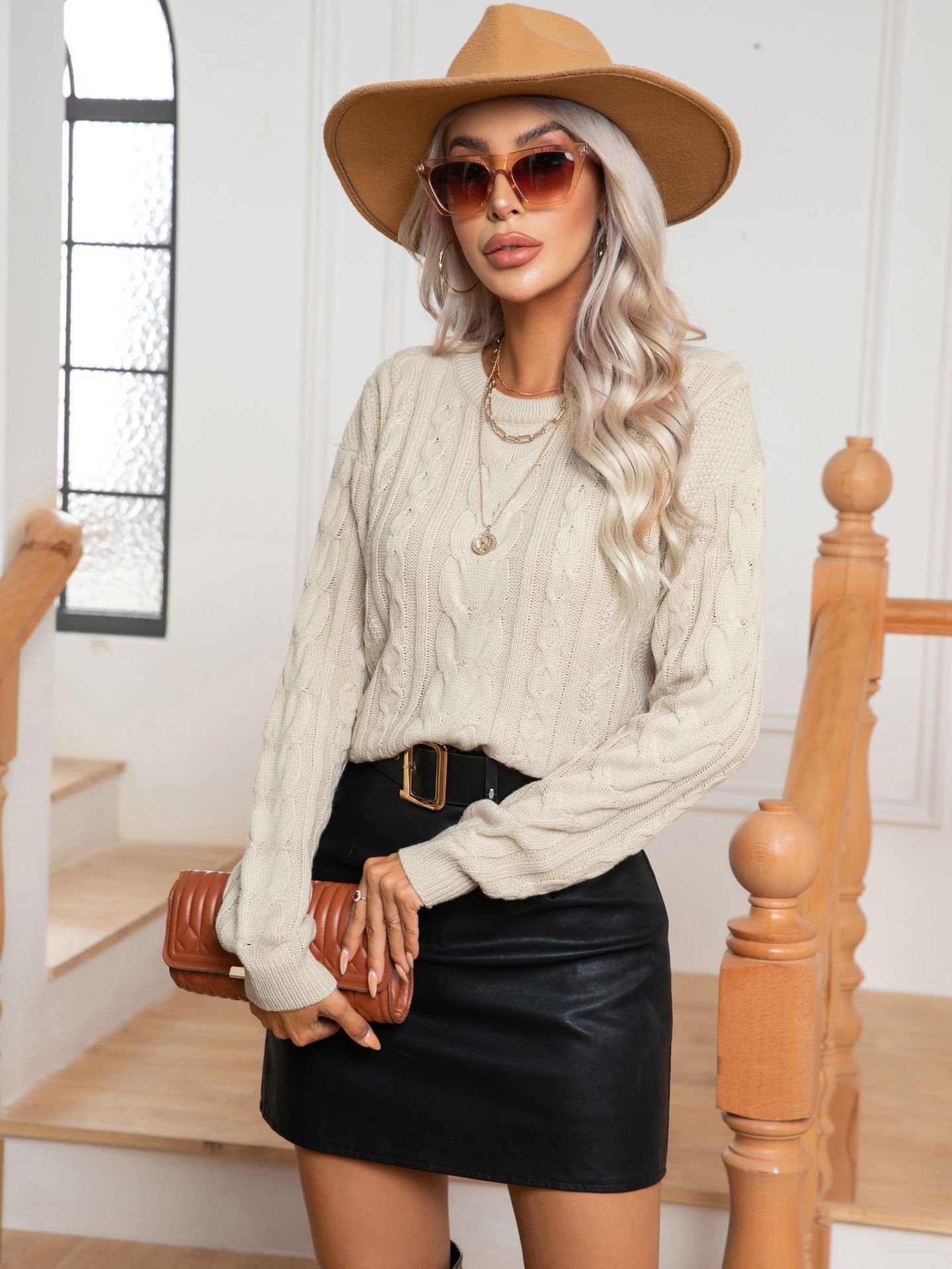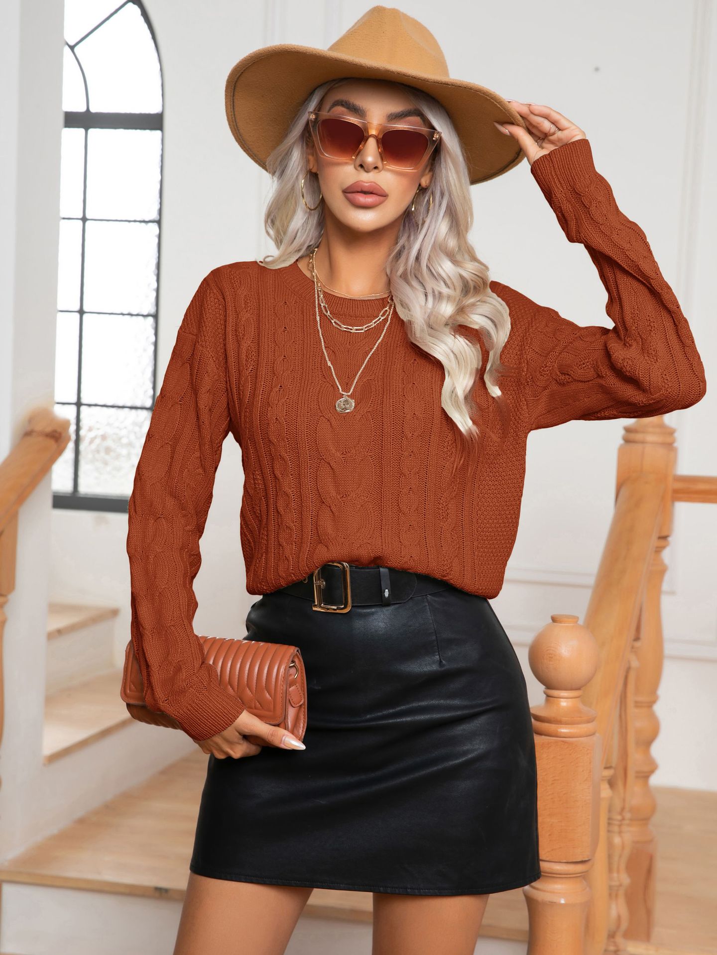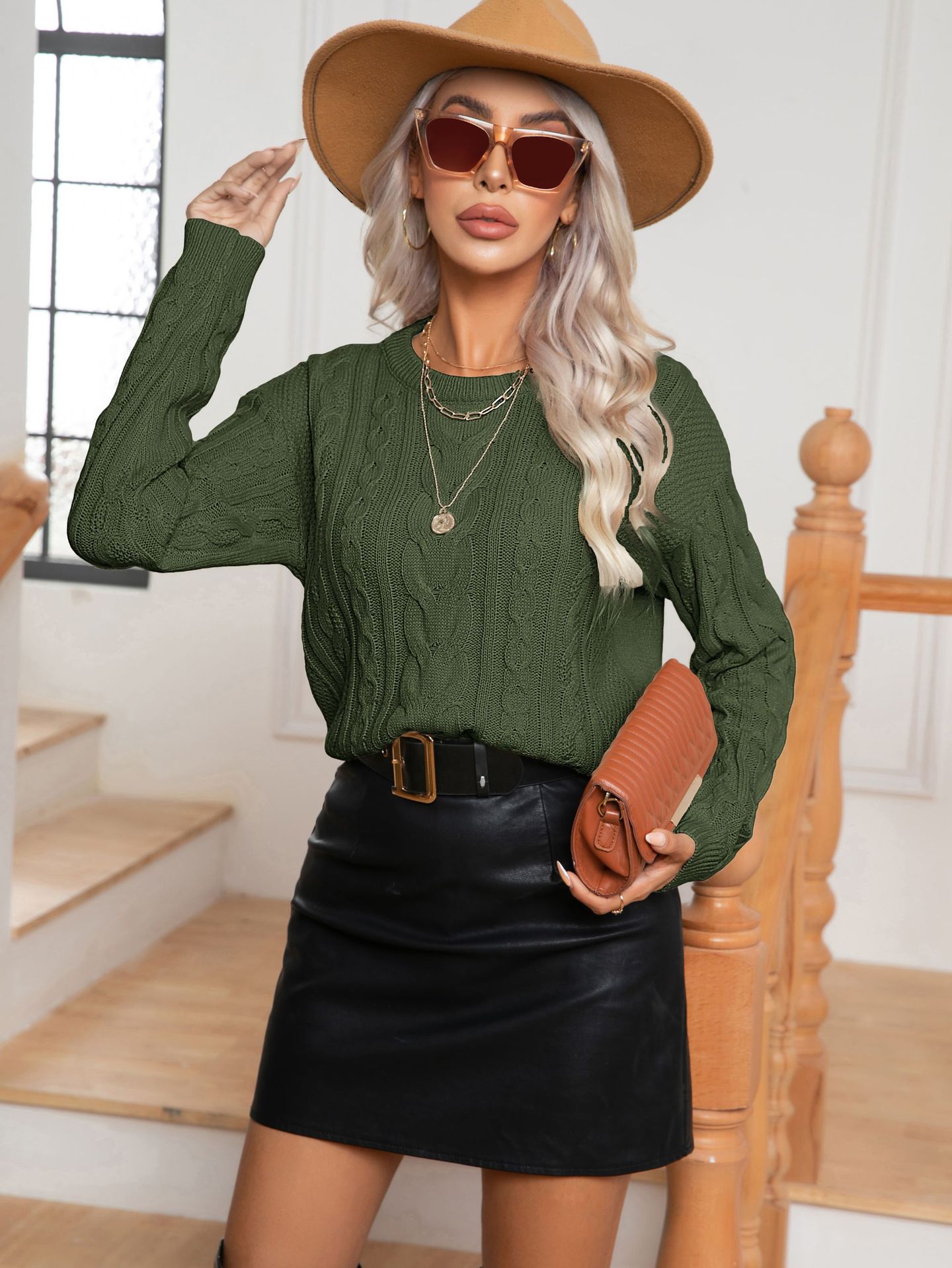 Womens Retro Cable-Knit Long-Sleeve Knitted Pullover Sweater