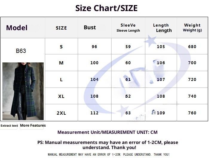 Womens Single-Breasted Plaid Long-Sleeve Long Cardigan Coat